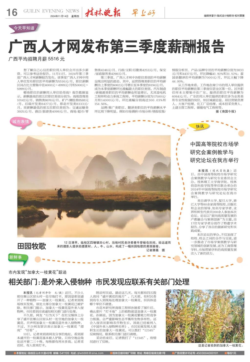 中國日報網鏈接:https://cn.chinadaily.com.cn/a/202411/12/WS6732eca0a310b59111da2f60.html中國新聞網鏈接:http://www.gx.chinanews.com.cn/news/2024-11-13/detail-iheixhin9850347.shtml桂林晚報: