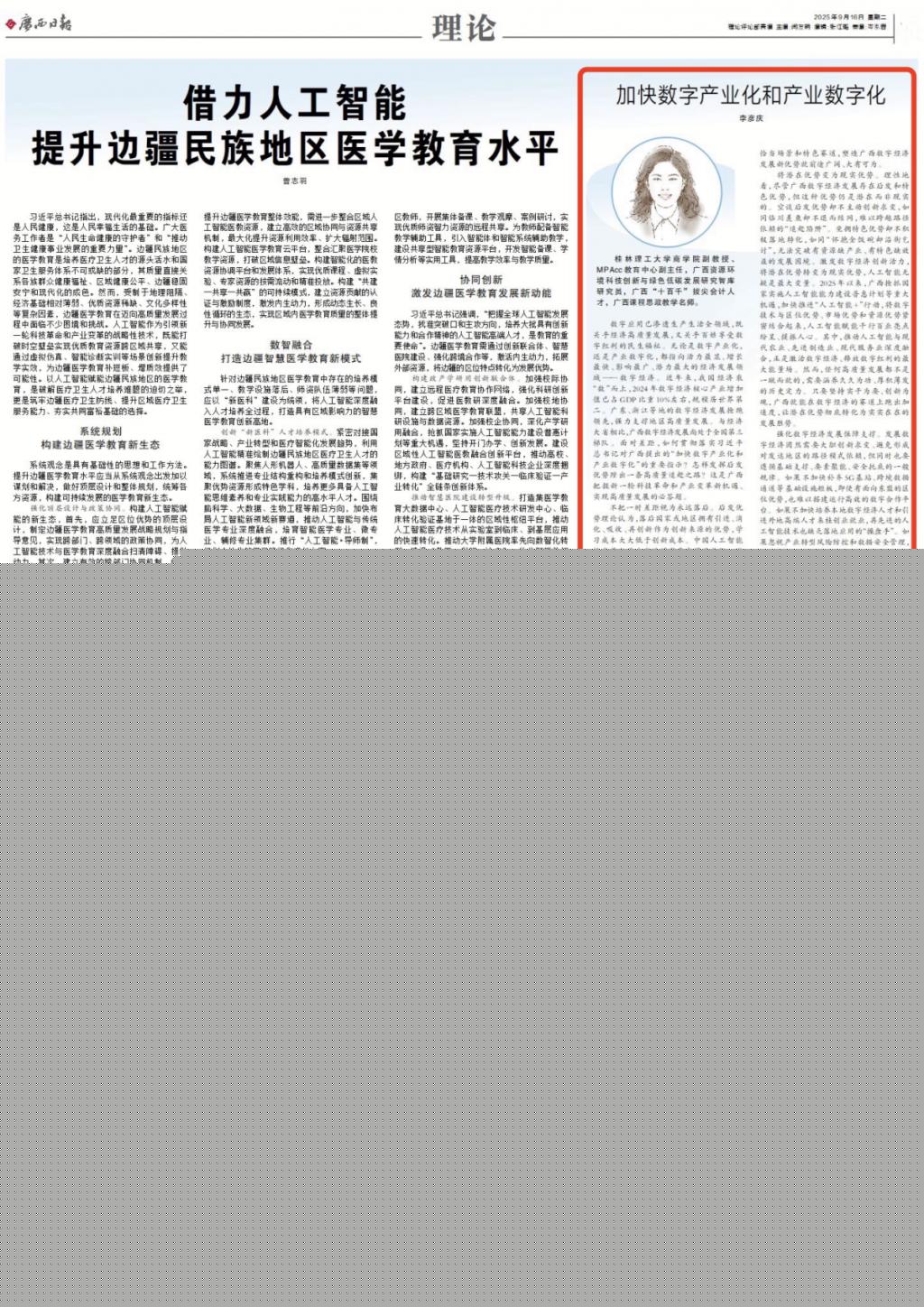 近日,《廣西日報》“青年說理”欄目刊發中國·永樂高131net李彥慶副教授理論文章《加快數字產業化和產業數字化》。文章從“不把一時差距視為永遠落后”、“將潛在優勢變為現實優勢”、“強化數字經濟發展保障支撐”等三個方面進行了介紹?,F將全文轉載如下。外宣稿鏈接:https://apph5.cloudgx.cn/article/sync1967727903722569728李彥慶:桂林理工大學商學院副教授、MPAcc教育中心副主任,廣西資源環境科技創新與綠色低碳發展研究智庫研究員...